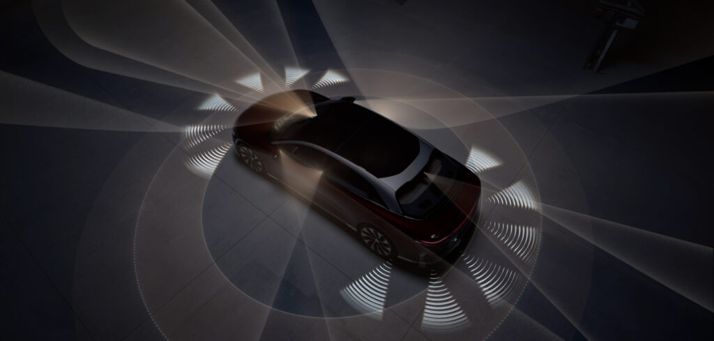 The sensor suite utilizes 14 visible-light cameras, five radar units, four surround view cameras, ultrasonic sensors throughout the vehicle exterior, and, for DreamDrive Pro, the first automotive installation of lidar in North America.