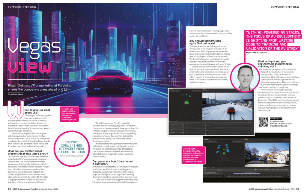 Roger Ordman, VP of marketing at Foretellix, which provides data automation for AI-powered autonomy, shares the company’s plans ahead of this year’s CES (January 6-9, 2026), in an exclusive interview first published in the January 2026 issue of ADAS & Autonomous Vehicle International magazine.