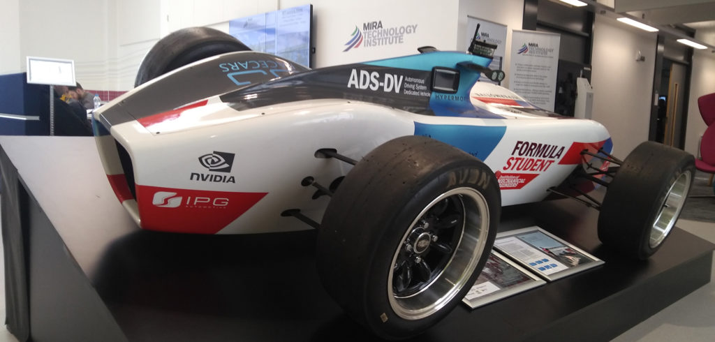 The MIRA Technology Institute in the UK will be exhibiting the vehicle from the Formula Student Artificial Intelligence (FS-AI) competition operated by the Institution of Mechanical Engineers, which challenges engineering undergraduates to design and build an AI driver vehicle to compete in timed trials at the Silverstone race circuit.