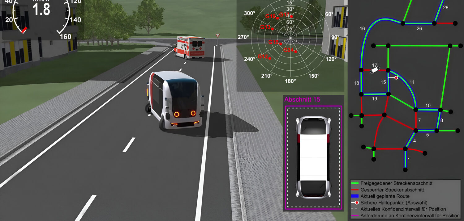 IPG Automotive contributed its CarMaker simulation platform. For the sub-project on configuration and setup of a SIL and HIL environment for modular validation, IPG Automotive worked closely with the Institute of Automotive Engineering at the Technical University of Darmstadt (FZD), with its focus on modular validation, motion control and safe stopping.