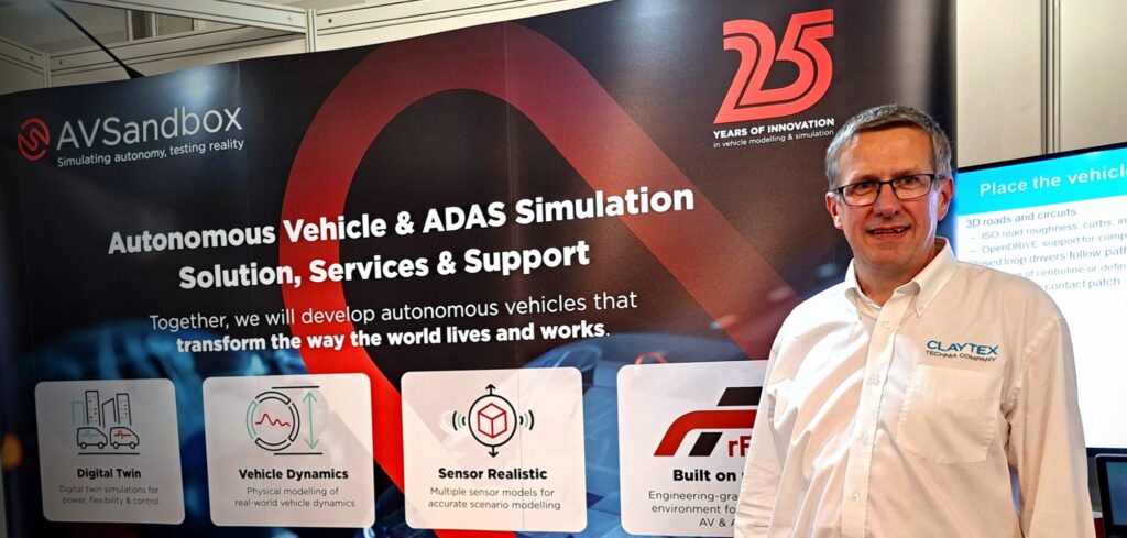 Claytex is at ADAS & Autonomous Vehicle Technology Expo California to showcase its AVSandbox product, which is an ADAS and AV simulation environment. According to managing director Mike Dempsey, “AVSandbox provides a sensor realistic simulation environment to immerse the ADAS feature or AV control system into the virtual world so that our customers can test and develop their systems using simulation.”