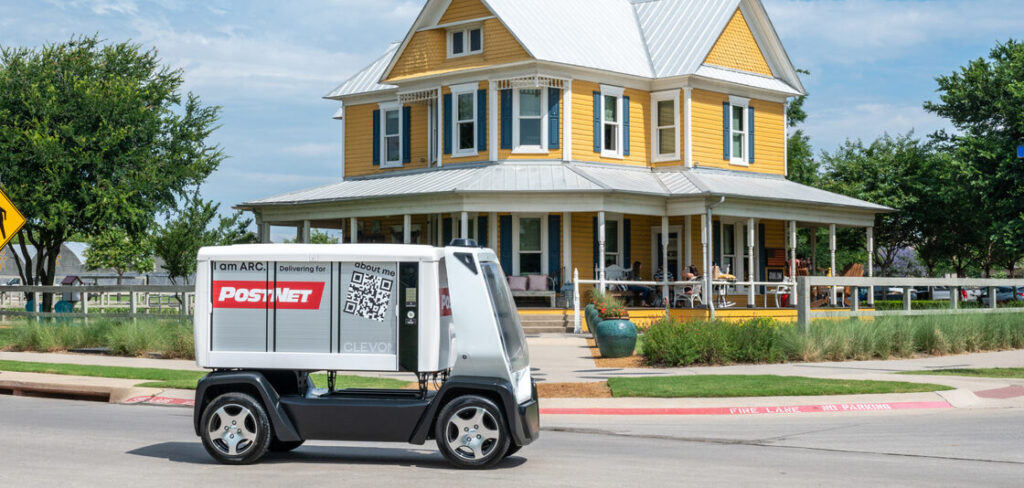 Estonian autonomous delivery innovator Clevon has launched a commercial service in the USA in collaboration with PostNet Northlake. Clevon’s state-of-the-art autonomous robot carriers (ARCs) are being used to service PostNet customers in Northlake, Texas.