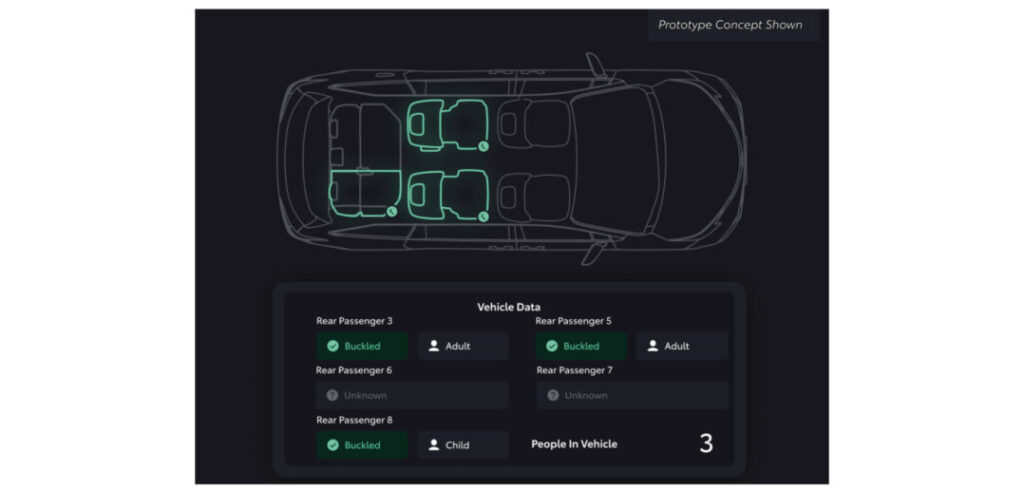The concept uses a 4D imaging radar sensor, mounted out of sight above the vehicle’s headliner, that can detect presence of a lifeform in the vehicle, even after a driver exits. Specifically, it has the ability to sense micro movements, such as a heartbeat, motion and respiration of occupants across three full seating rows, the cargo area and footwells. It also classifies all occupants according to size, posture and position – supporting advanced safety applications.