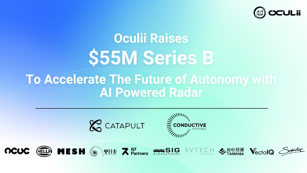 Oculii, which provides advanced AI software for radar perception, has raised US$55m in a Series B funding round co-led by Catapult Ventures and Conductive Ventures, with participation from Taiwania Capital, Susquehanna International Group (SIG), HELLA Ventures, PHI-Zoyi Capital, R7 Partners, VectoIQ, ACVC Partners, Mesh Ventures, SV Tech Ventures, Schox Ventures and Signature Bank. The new round of financing brings Oculii’s total funding amount to US$75m.