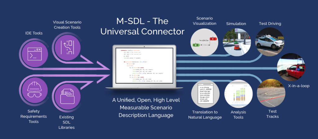 By opening and contributing M-SDL, tool vendors, suppliers and developers will be able to use a common, human readable, high-level language to simplify the capture, reuse and sharing of scenarios, as well as easily specify any mix of scenarios and operating conditions to identify previously unknown hazardous edge cases. They will also be able to monitor and measure the coverage of the autonomous functionality critical to prove AV safety, independent of tests and testing platforms.